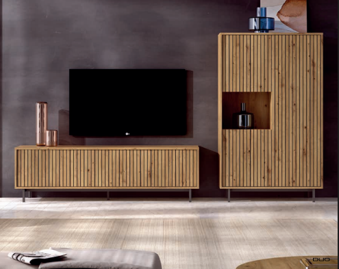 Mueble de TV moderno y elegante, ideal para salón contemporáneo. Diseñado con líneas limpias y acabados de alta calidad, ofrece amplio espacio de almacenamiento para dispositivos, decoración y organización del hogar. Perfecto como mueble de televisión funcional, combina estilo y practicidad para crear un ambiente acogedor y sofisticado.