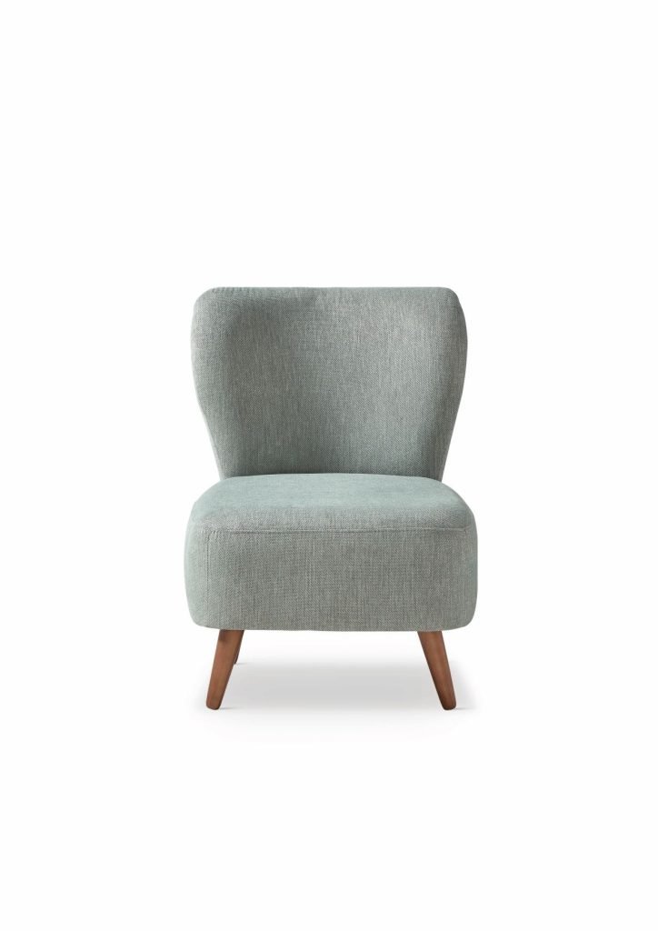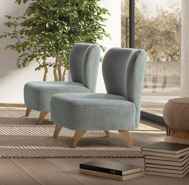 Sus líneas suaves y proporciones equilibradas estilizan cualquier espacio, mientras que sus patas inclinadas en acabado madera aportan calidez y un aire contemporáneo. Gracias a su diseño versátil, Gamma encaja perfectamente en salones modernos, dormitorios o rincones auxiliares con personalidad.