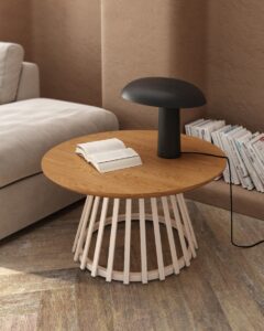 Con proporciones equilibradas —aproximadamente 80 a 100 cm de diámetro y 35 a 45 cm de altura—, la mesa de centro Sahara de Bogal es ideal para colocarse frente a sofás o sillones, convirtiéndose en el centro visual del salón. Su diseño abierto permite que no sobrecargue el ambiente, lo que la hace perfecta incluso en espacios pequeños.