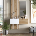 El modelo 201 de Ramis es un recibidor moderno, funcional y estético, pensado para entradas de tamaño medio (≈100 cm de ancho). Combina superficies cerradas y espejo para unir almacenaje, decoración y practicidad en un solo conjunto.