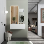 El modelo 205 de Ramis es un recibidor compacto y muy funcional (anchura de 90 cm) que combina estética moderna y soluciones prácticas para entradas de espacios reducidos. Su diseño modular permite integrar almacenamiento discreto, espejo y un panel decorativo en una composición elegante y versátil.
