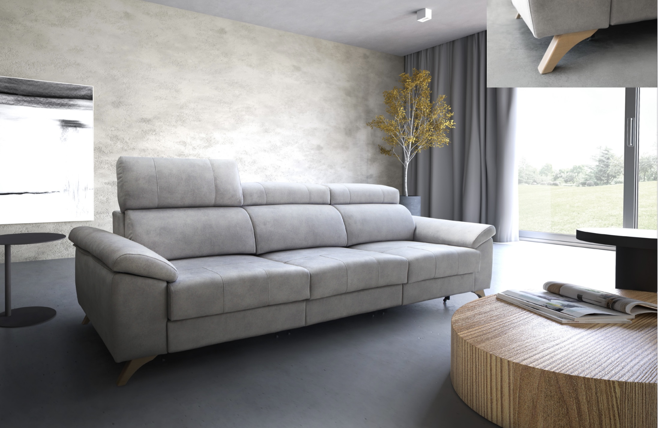 En cuanto a diseño, el sofá modelo Alpino combina líneas modernas con una estética elegante, encajando fácilmente en distintos estilos de decoración. Además, puede personalizarse en diferentes tapizados y colores para adaptarse perfectamente a tu hogar.
